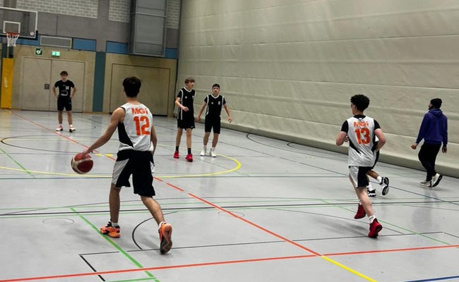 Die U18-Basketballmannschaft des MGI nahm in Lüdenscheid an der Kreismeisterschaft teil und traf dabei auf starke Teams der Rothensteinschule Meinerzhagen, des Zeppelin-Gymnasiums Lüdenscheid sowie auf die Gastgeber des Bergstadt-Gymnasiums.