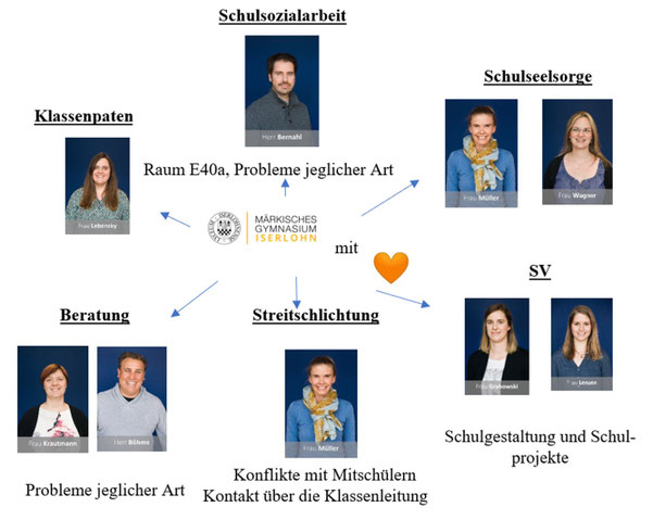 In persönlich schwierigen Situationen, die sich auch negativ auf den Schulalltag auswirken können, bietet das Beratungsteam des MGI (Frau Krautmann, Herr Böhme und Herr Bernahl) Hilfe an. Anlass für ein Gespräch mit dem Berater können z.B. sein: